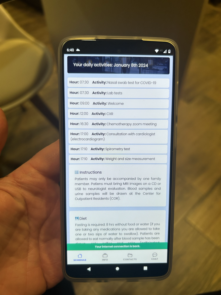 We hebben een telefoon gekregen waar onze programma’s voor de komende dagen op staan.