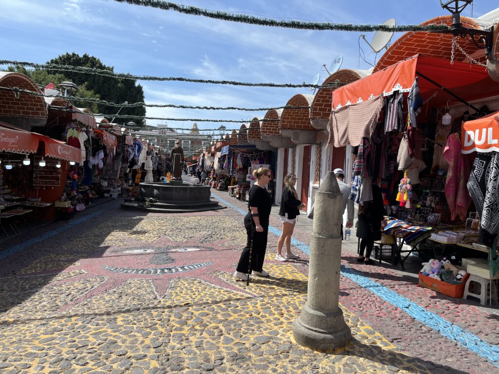 Wij mochten 45 min! in het oude gedeelte van Puebla lopen. Er waren een aantal toeristen winkels die eigenlijk allemaal hetzelfde waren, maar toch heel fijn om even buiten te zijn.