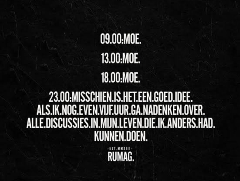 In deze periode is het ook normaal om heel moe te zijn, je word zeg maar moe van het moe zijn.